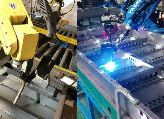 激光前置掃描焊縫位置,并記錄在系統里面,機器人行走到測量位置時,糾正偏差。