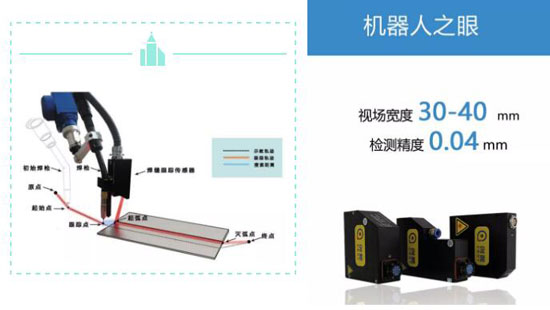 在工件出現(xiàn)加工偏差或者受熱變形等情況時,能夠及時糾正焊縫跑偏或?qū)捳灰磺闆r。真正實現(xiàn)“充當(dāng)焊接機器人的火眼金睛”,激光視覺二維檢測、非接觸式三維跟蹤,讓機器人真正做到“能看、能做”。