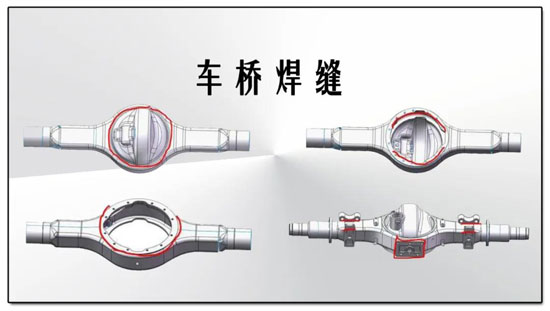 車橋焊接的眾多焊縫中,變形軸管與橋殼的兩條環焊縫尤其關鍵,它與驅動橋殼形成一體,使左右驅動車輪的軸向相對位置固定,一起支承車架及其上的各總成質量,同時在汽車行駛時承受由車輪傳來的路面反作用力和力矩,并經懸架傳給車架。