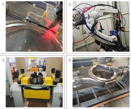 其中的自動焊接部分使用焊接機器人適配創想智控機器人焊縫跟蹤系統后,可自動對中、兼容不容規格的工件、適應工件偏差,可保證焊槍始終處于船型、連接板等各種焊縫的焊接位置,一次性連續完成自動焊接。