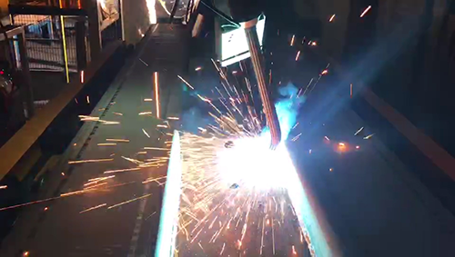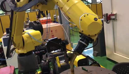 2、創想智控發那科機器人焊縫跟蹤系統,集裝箱焊接應用案例,點式激光四點尋位焊接。